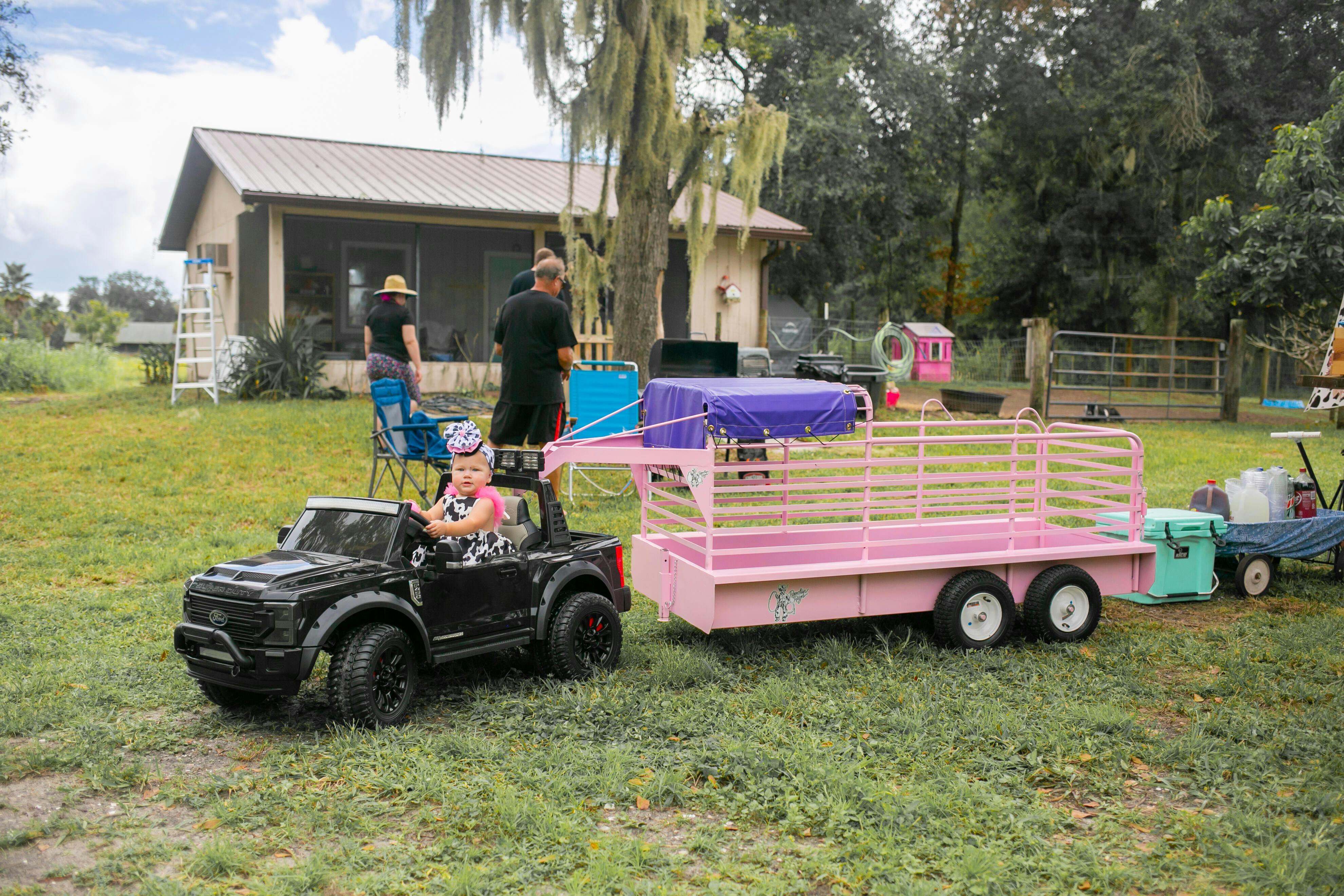 We are in love with our daughter’s first birthday milestone gift that will last her and her siblings to come for years to come!!! They customized her license plate and horse trailer the most beautiful light pink!